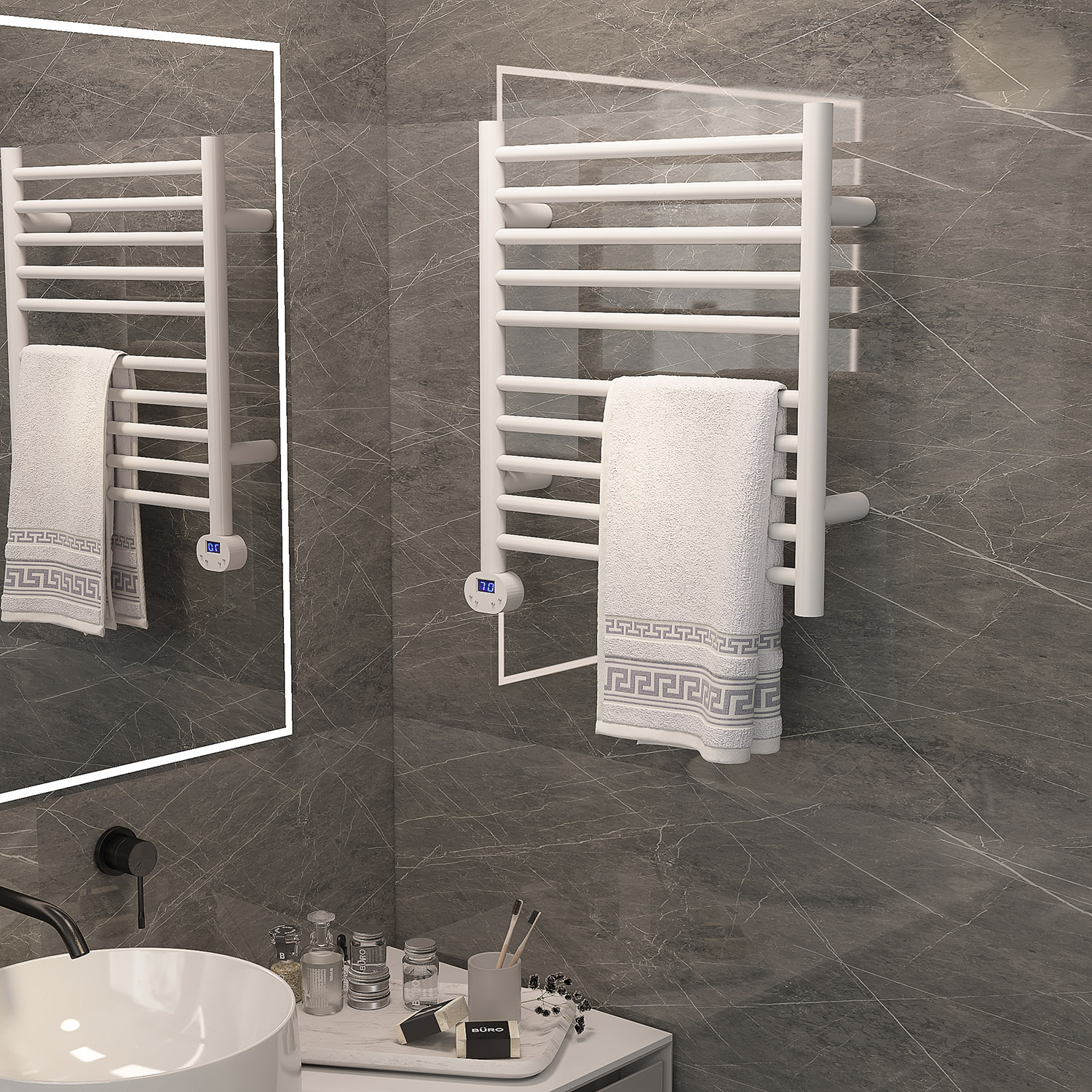 10桿mini開關電熱毛巾架 10 bar mini switch heated towel rail 材質(zhì)Material:SS201/SS304 功率Power:220V/130W 表面Surface:White Painted 白色噴塑 尺寸Size:500*110*550mm 包裝Ctn size:550*110*650mm